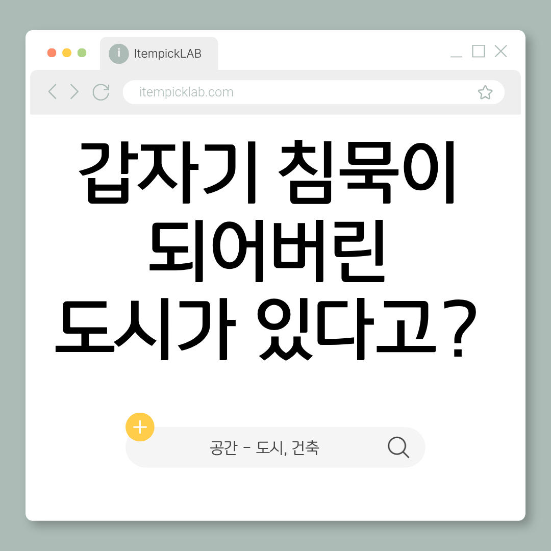 화려한 고층 빌딩과 활기찬 시장, 평화로운 주택가… 한때 수만 명의 삶이 꿈틀대던 도시들이 지금은 수풀이 우거진 채 무너져 가고 있습니다. ‘유령 도시(Ghost Town)’는 단순히 사람이 살지 않는 곳이 아닙니다. 인류의 영광과 탐욕, 그리고 피할 수 없었던 재난이 고스란히 박제된 역사의 현장입니다.