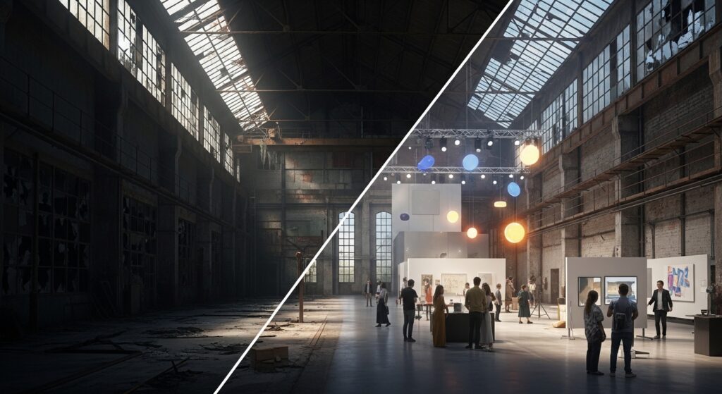 오히려 수십 년, 수백 년에 걸쳐 만들어진 산업 시설의 역사적 깊이와 독특한 공간적 스케일은 어떤 새 건물도 만들어내기 어려운 특별한 가치를 가집니다. 철거하면 영원히 사라지는 그 가치를 살리는 것이 21세기 도시 재생의 핵심 과제입니다.